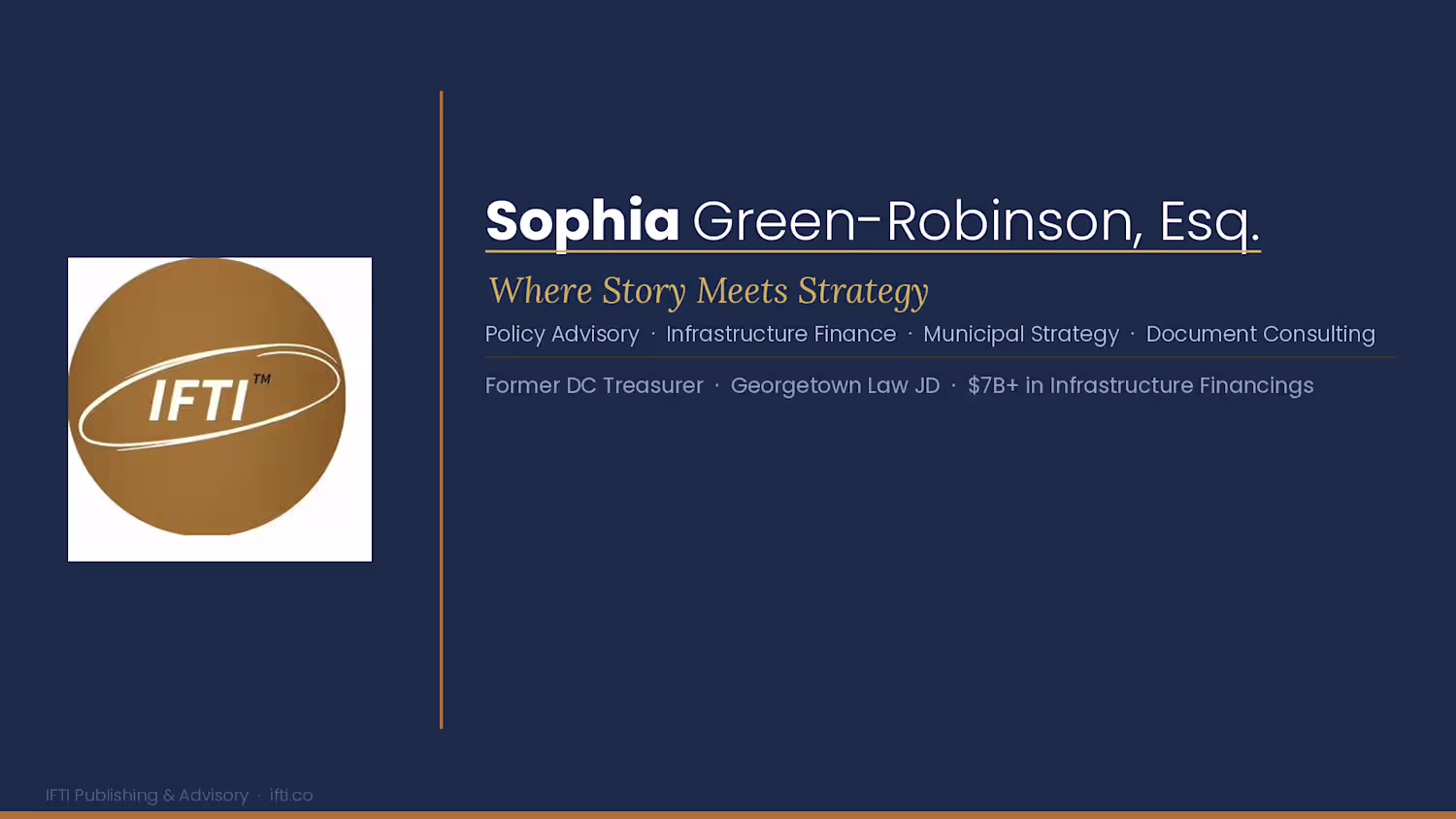 Title: Policy Brief Writing & Regulatory Advisory Description: Senior document-based policy advisory services delivered exclusively through written analysis, research memoranda, regulatory comment letters, and structured briefings. Drawing on 40+ years of experience in public finance, infrastructure policy, federal regulatory environments, and municipal advisory work — including service as the youngest Washington DC Treasurer in modern history. Engagements span infrastructure finance policy, broadband and telecommunications regulatory analysis, transportation and housing program strategy, tax-exempt debt structuring guidance, and senior technical review of complex financial and legal documents. All deliverables produced asynchronously via email and written documents — no meetings required. Served clients across federal, state, and local government agencies, transit authorities, housing organizations, and private sector infrastructure firms through Columbia Equity Financial Corp.