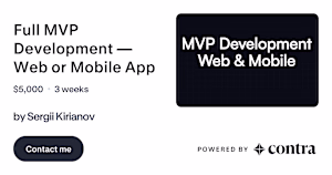 Read more about Full MVP Development — Web or Mobile App by Sergii Kirianov on Contra.