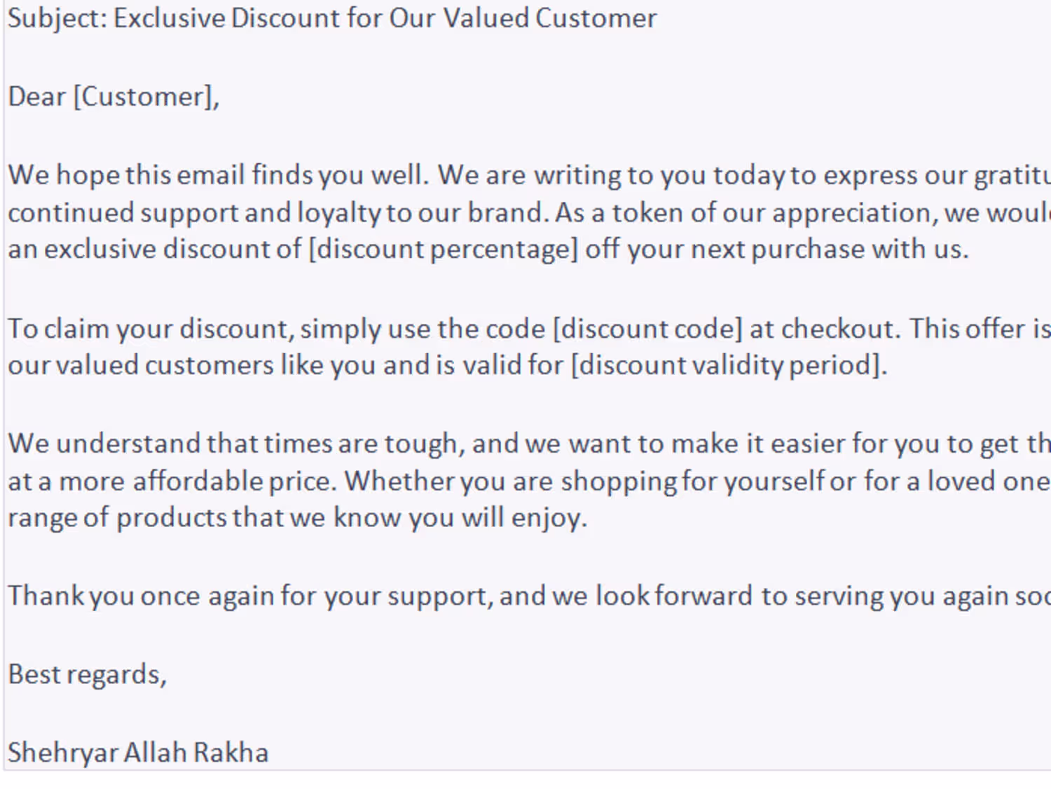 EmailCopy: Exclusive Discount for Our Valued Customer