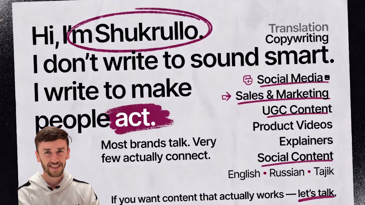 Enough with the pretty-but-dead content. Let's pump some life into your message—the kind that actually makes people buy. Hit us up and watch your copy become a conversion machine.
