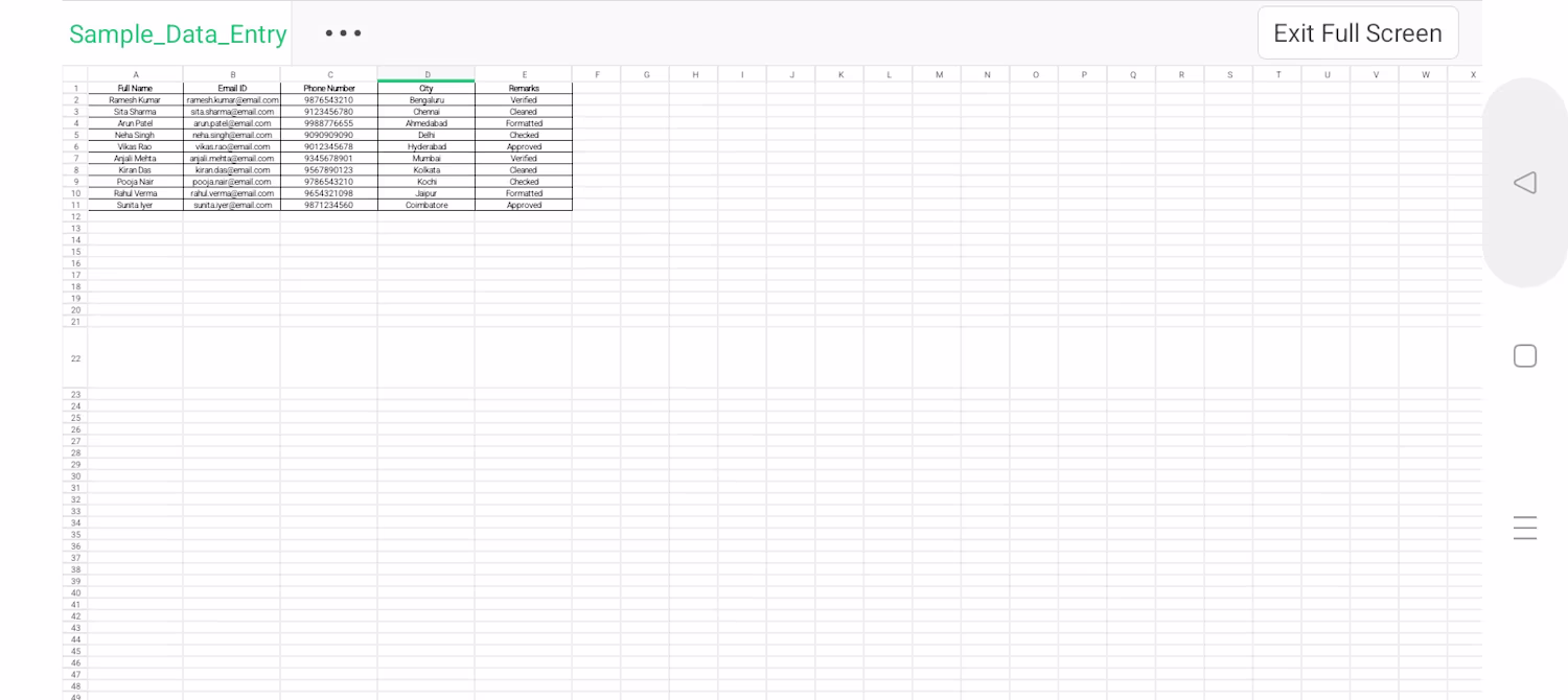 Accurate Excel Data Entry & Formatting