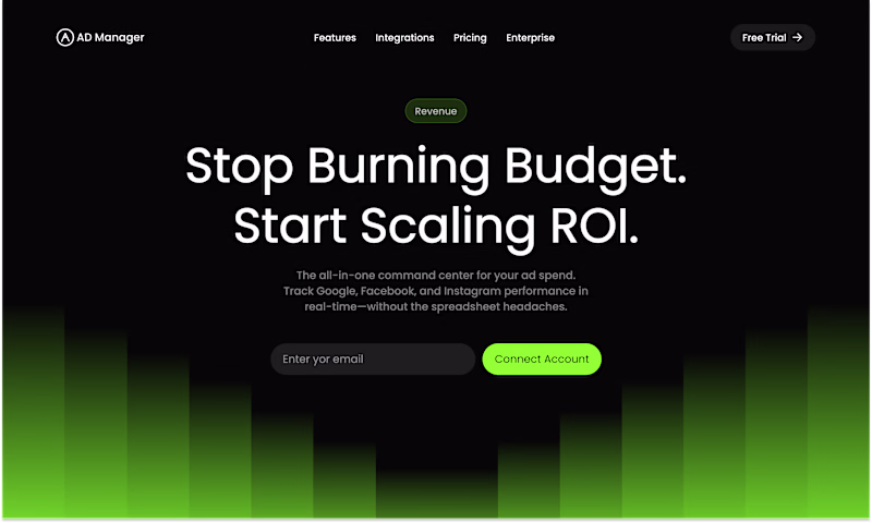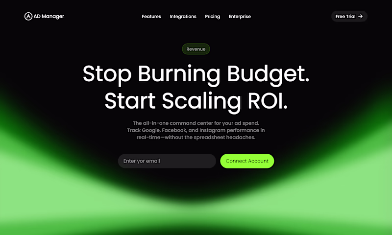 AD Manager: A premium SaaS interface built for the 5% of marketers who care about surgical precision and real-time ROI. No more spreadsheets, just growth.