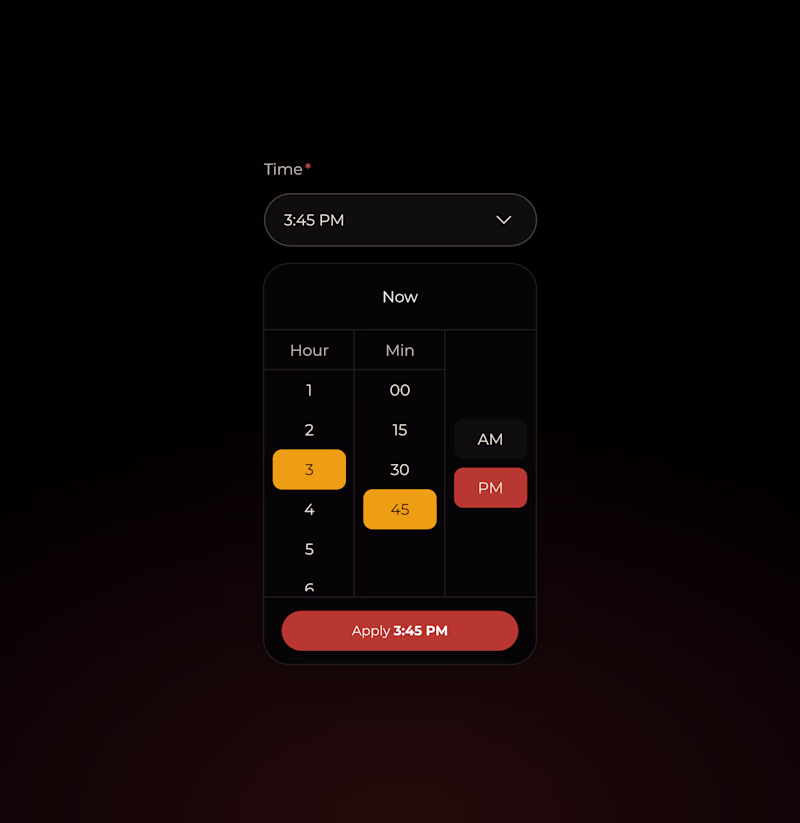 Hi folks! I would love to know your preference on these for a dropdown menu on desktop for a time picker (that scales well to mobile) A: scroll + click with selected state B: scroll + click-to-snap rolodex