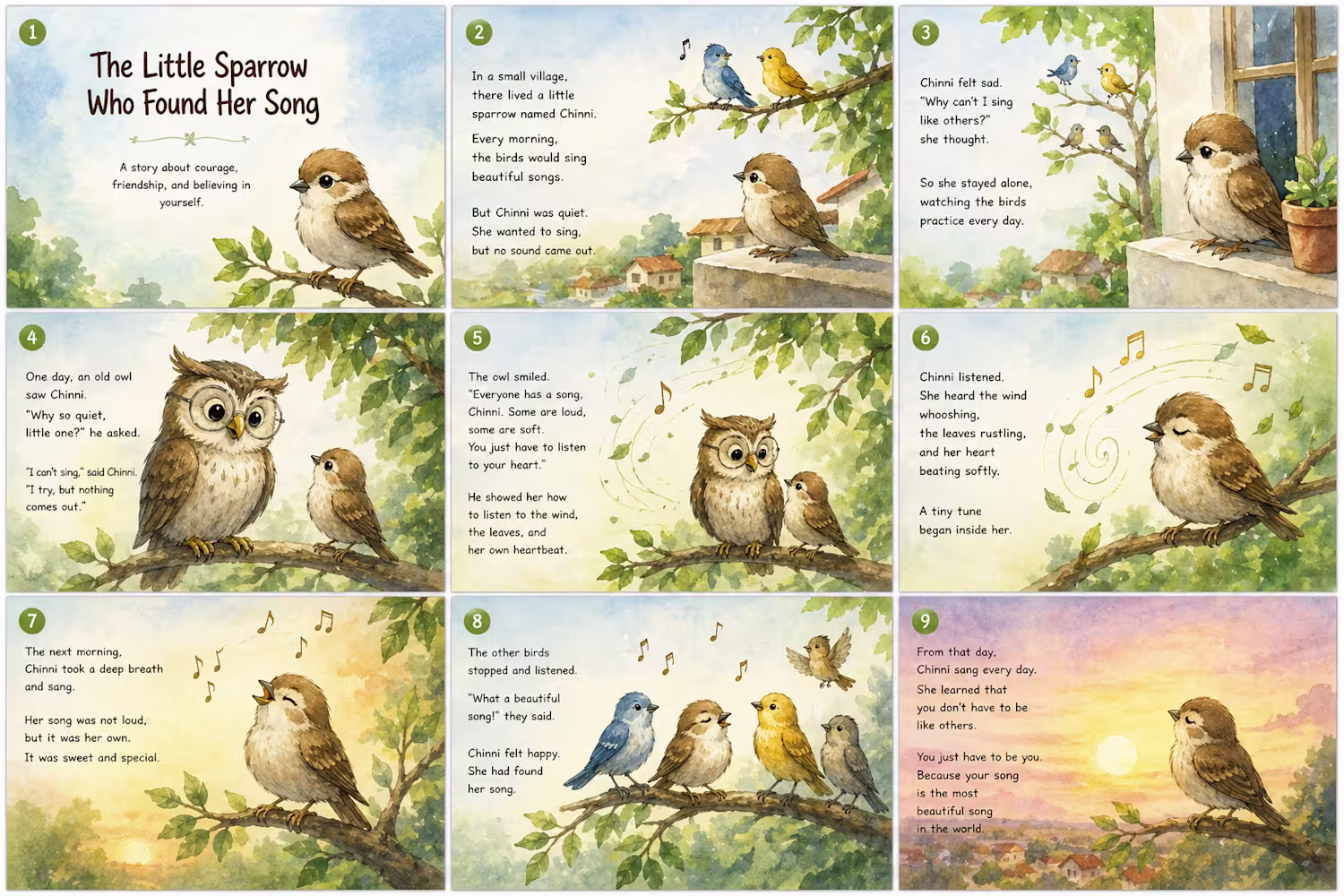 This is a story of a bird,who found its voice.