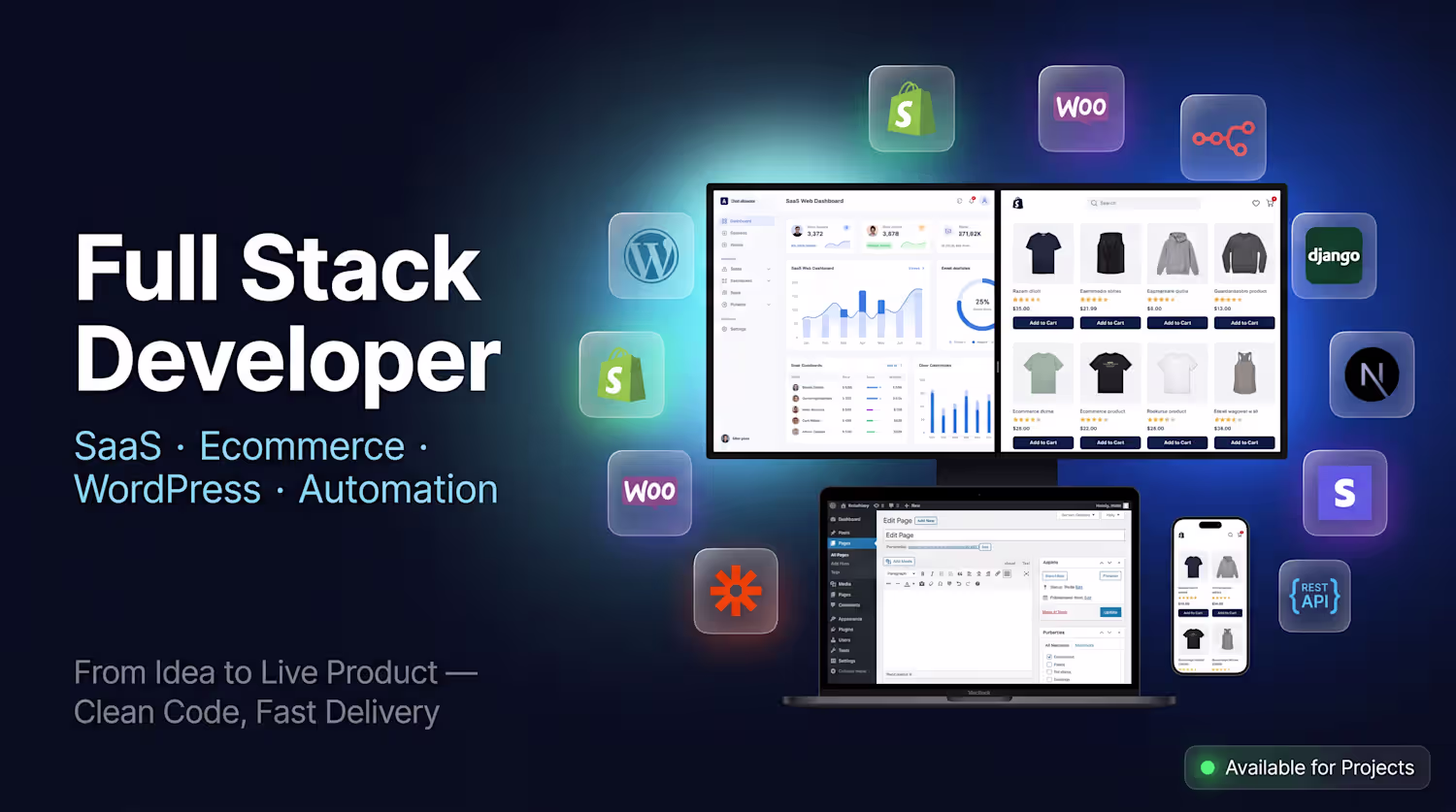 Developed backend APIs and an admin dashboard as a Python Full Stack Django Developer. Built scalable REST APIs using Django REST Framework to handle user management, business logic, and real-time data processing.