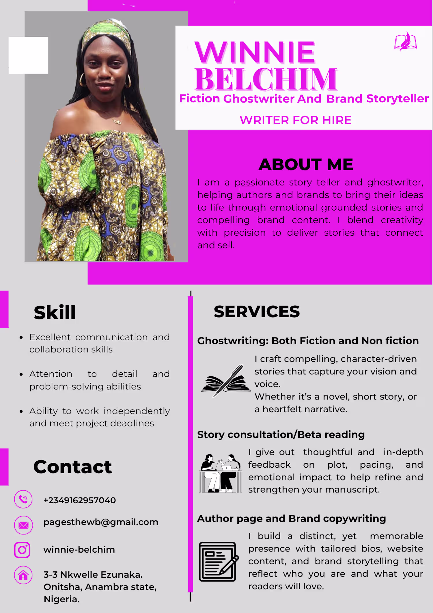 Content Writer, Ghostwriter and Brand copywriter.