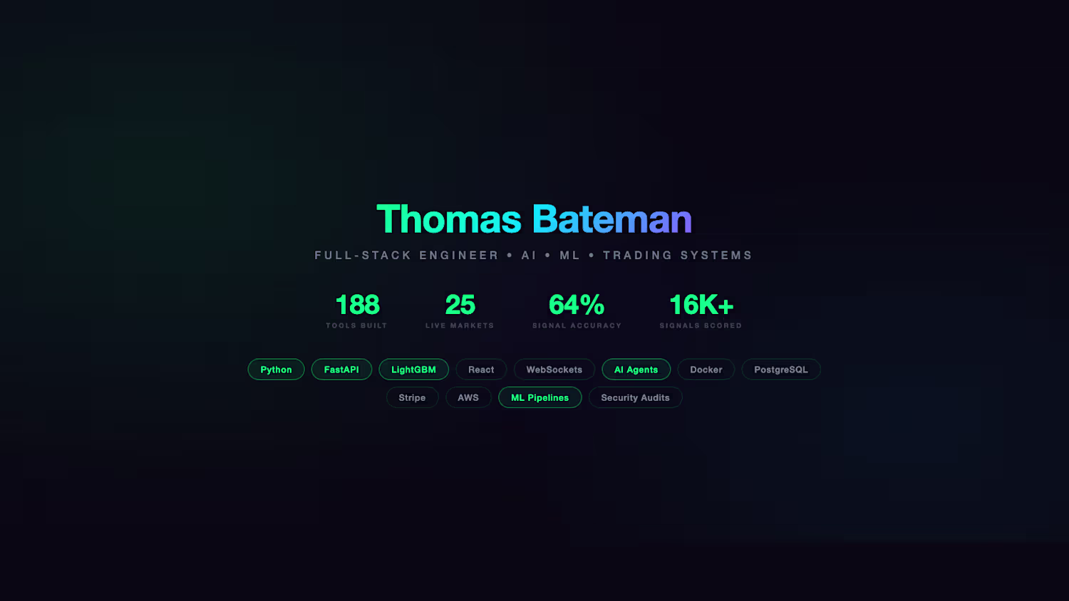 Full-stack engineer|AI agents, ML pipelines, trading systems