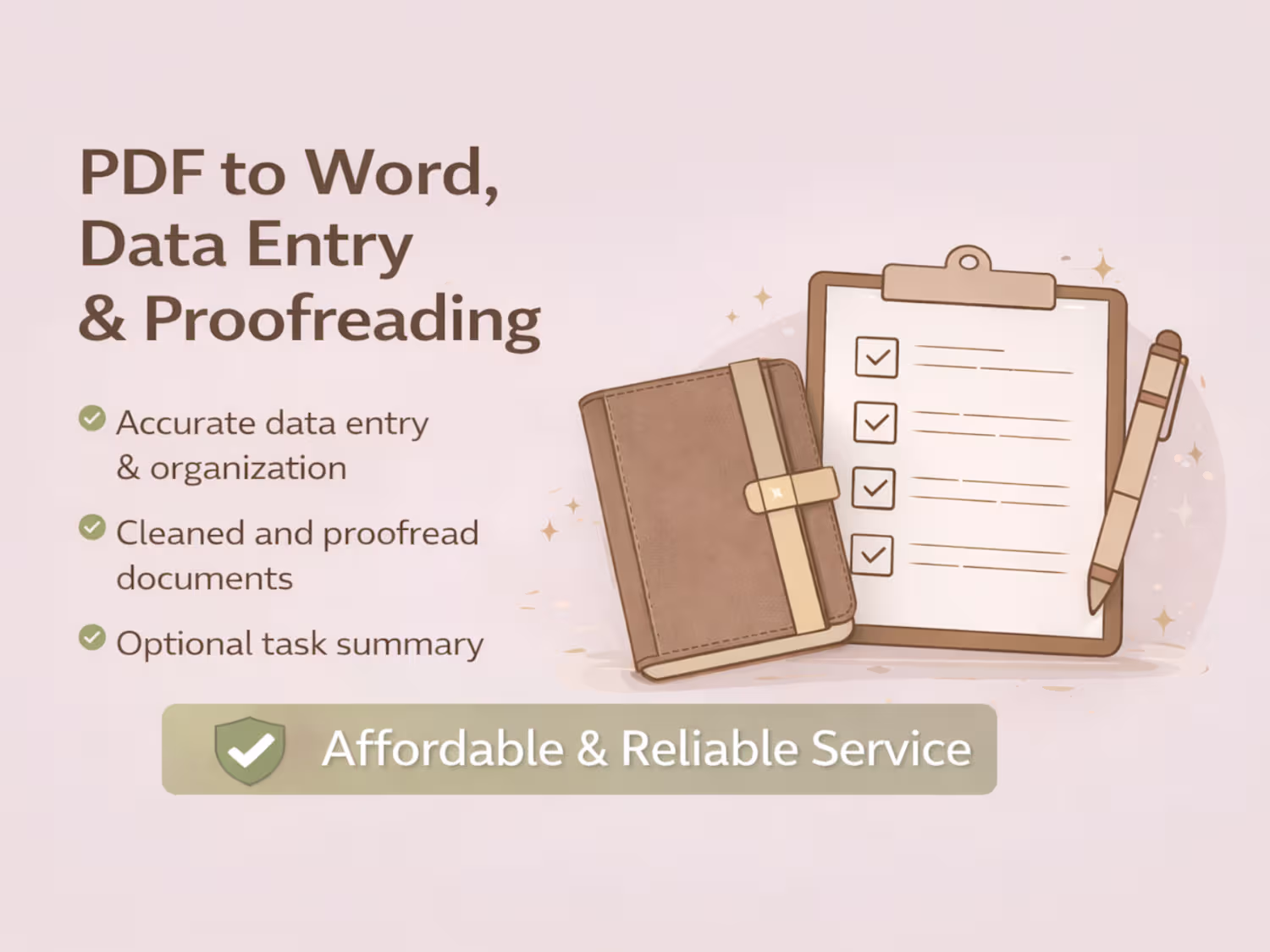 Recently launched my data entry and document support services on Contra. This sample showcases: • PDF to Word conversion • Accurate data entry • Handwritten to text • Basic proofreading & clean formatting Focused on clean, reliable, and detail-oriented work for individuals and small businesses.