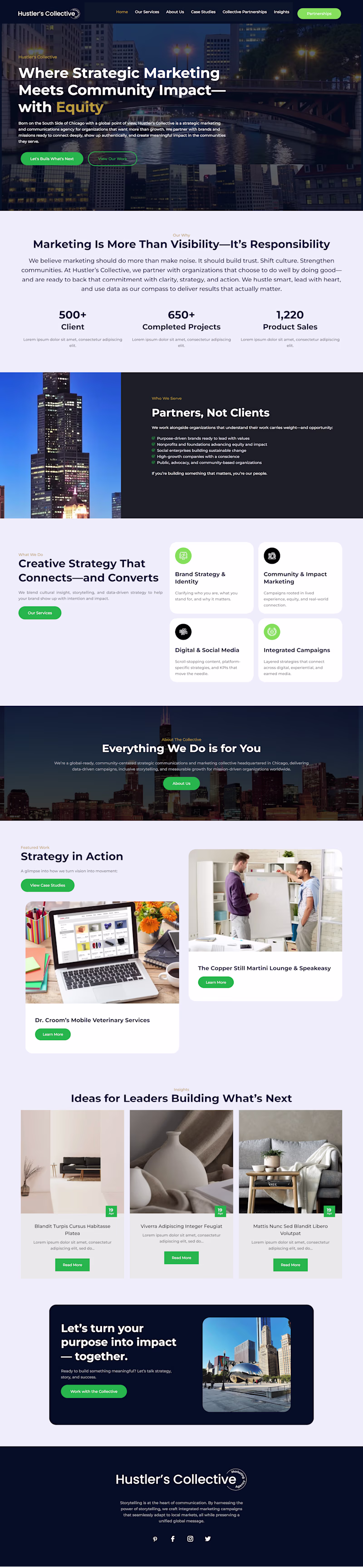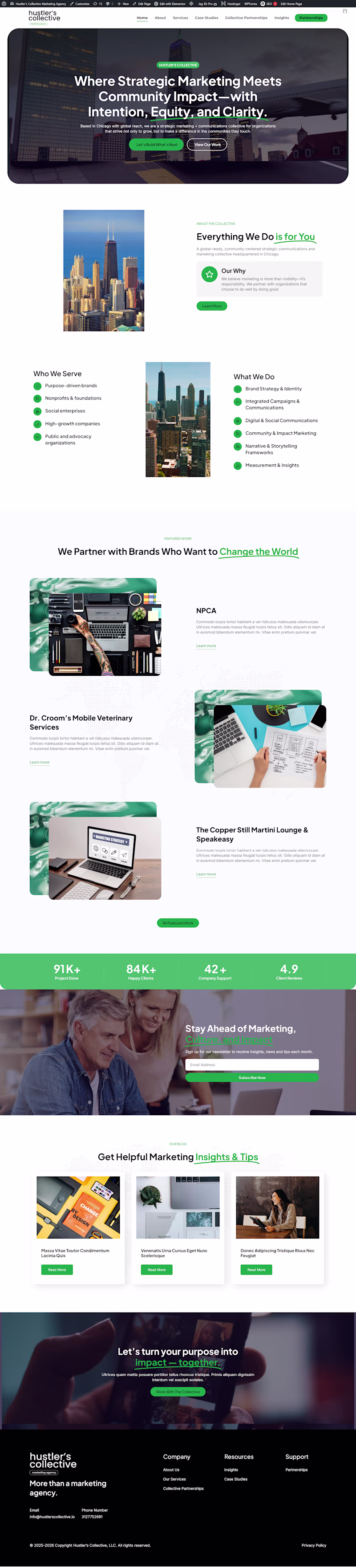 Currently building a responsive WordPress site for Hustler’s Collective Marketing Agency — a Chicago-based, community-centered strategic marketing and communications collective with global reach. The website...