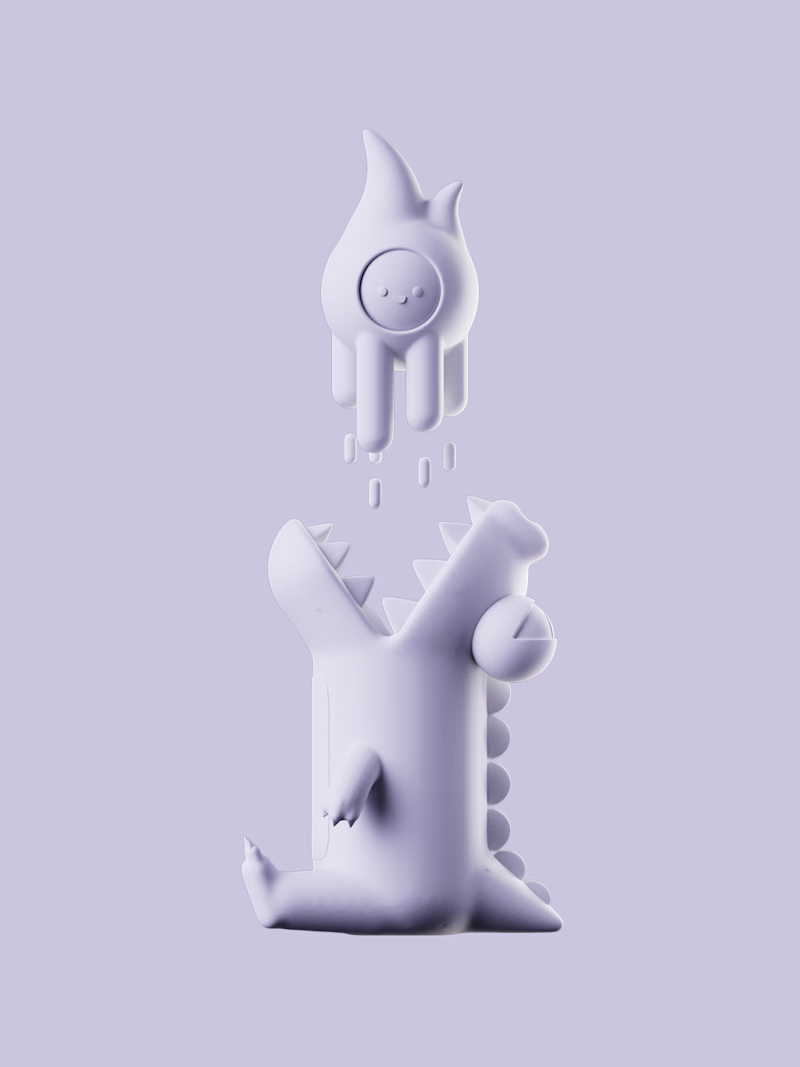3D animation artwork,This piece represents the NO. I and is called Fire-Shy Beast | 厌火獸 🖤🐊🔥There’s no signal here. If you can see this, you’re really lucky🙂