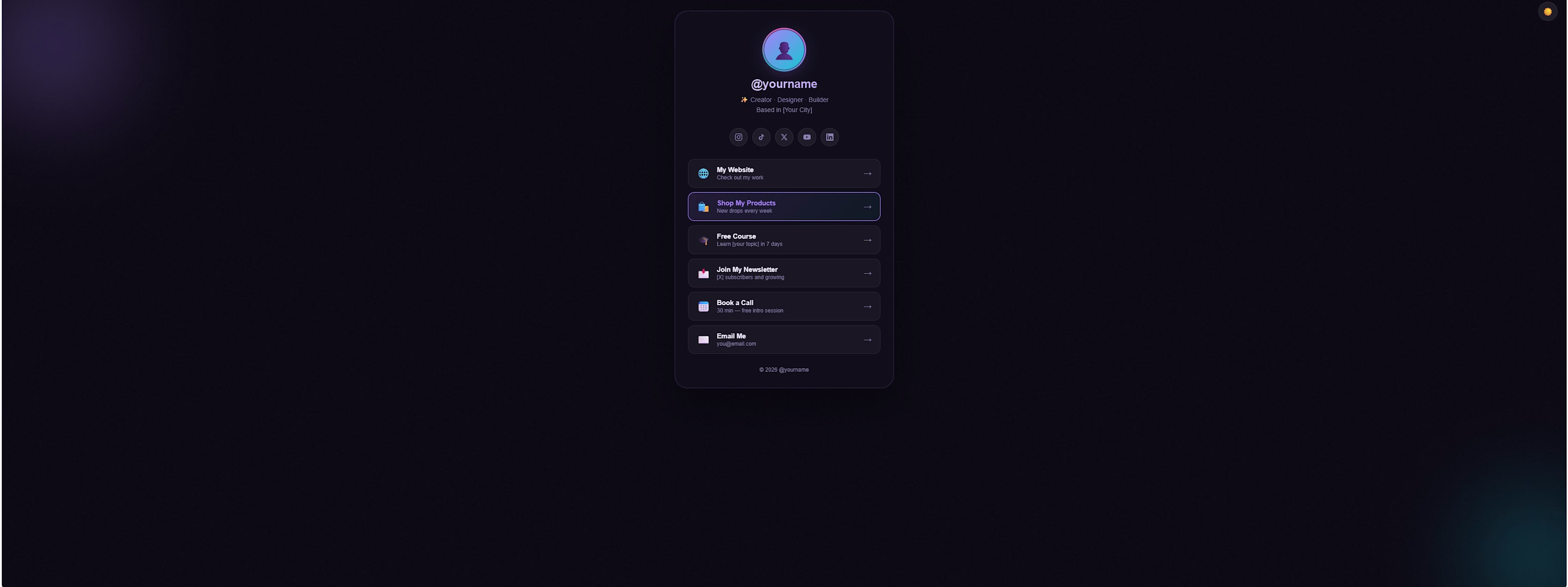 Animated Link in Bio Page Template — HTML/CSS/JS